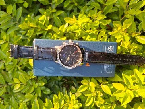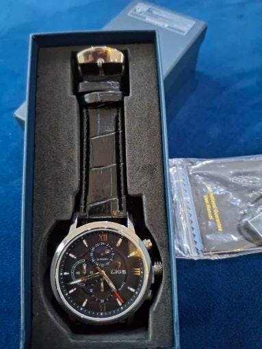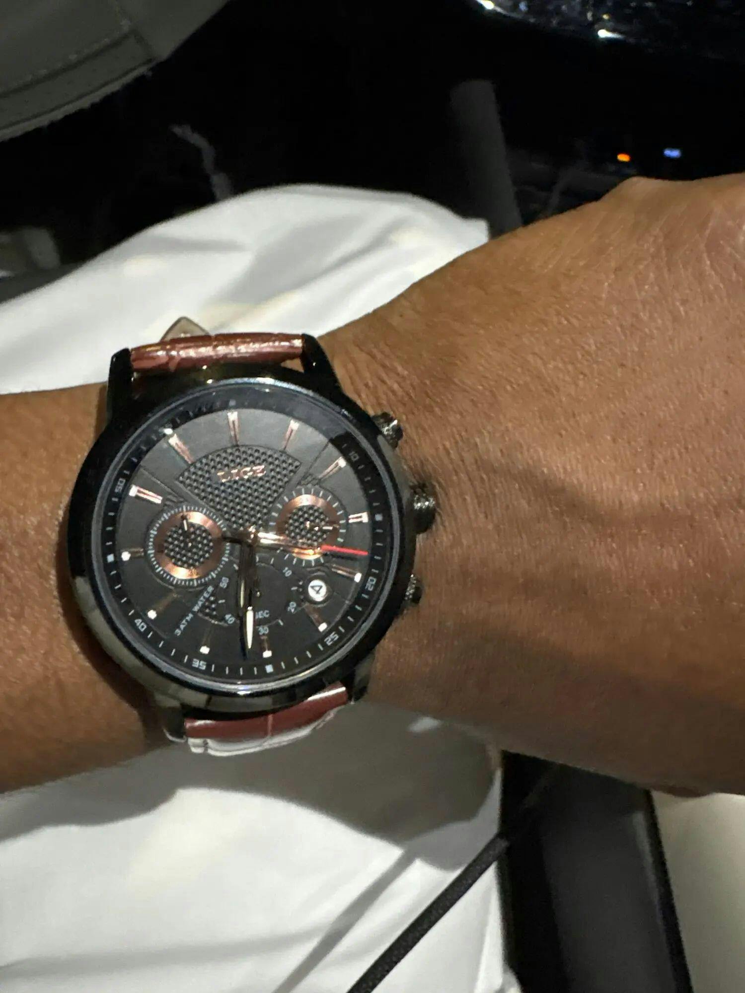 Equipped with a precision quartz chronograph, complete calendar, and luminous hands, this timepiece offers both utility and elegance. Whether at the office, outdoors, or on the move, it delivers reliability with a bold presence.