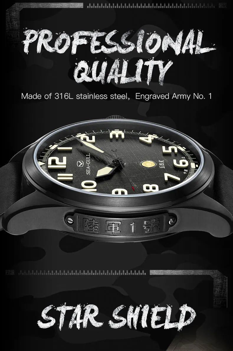 The Seagull 6107 Pilot Watch embodies the spirit of vintage military design while delivering modern durability and precision. With its bold 43mm stainless steel case, luminous Arabic numerals, and rugged nylon strap, this watch is crafted for enthusiasts who value both functionality and history.