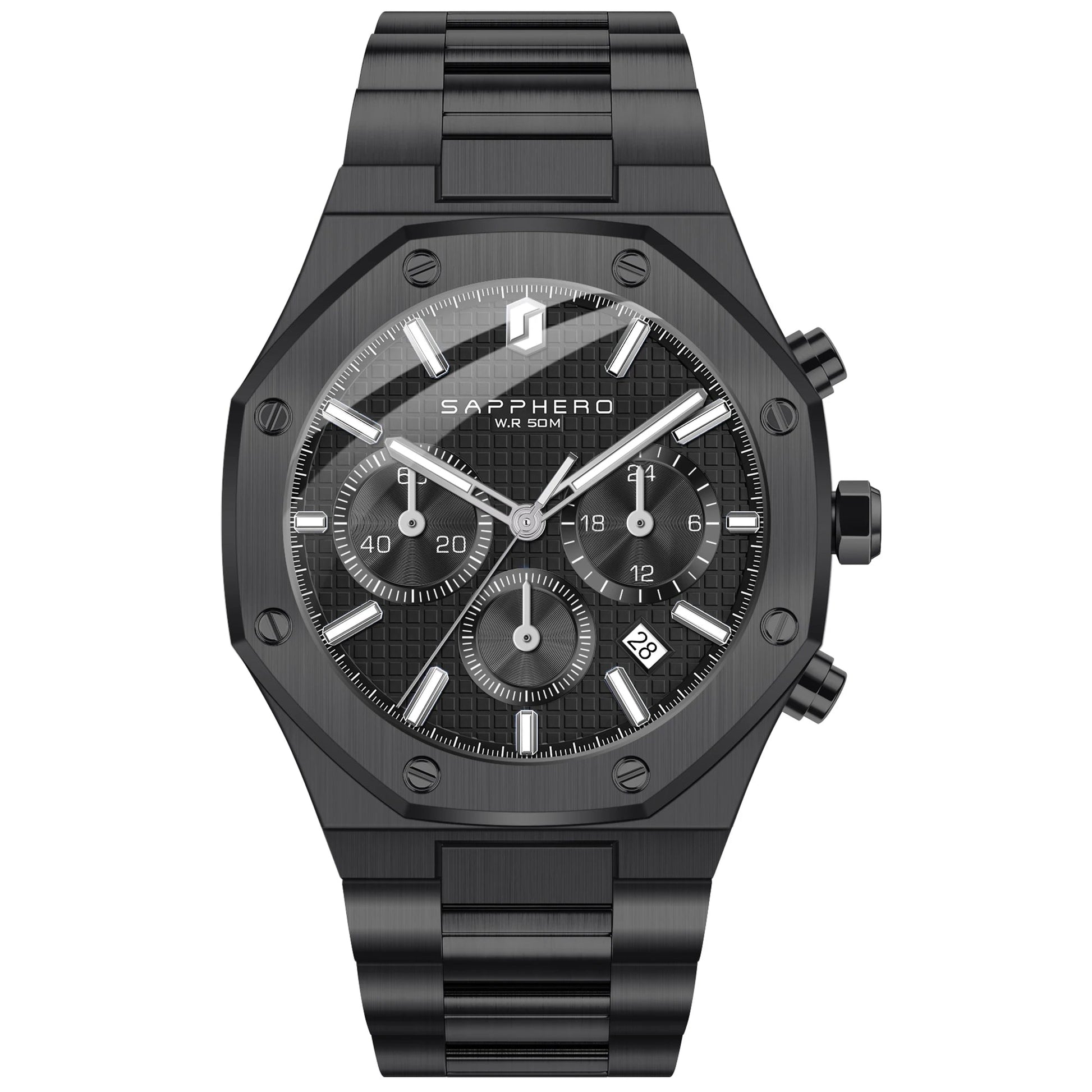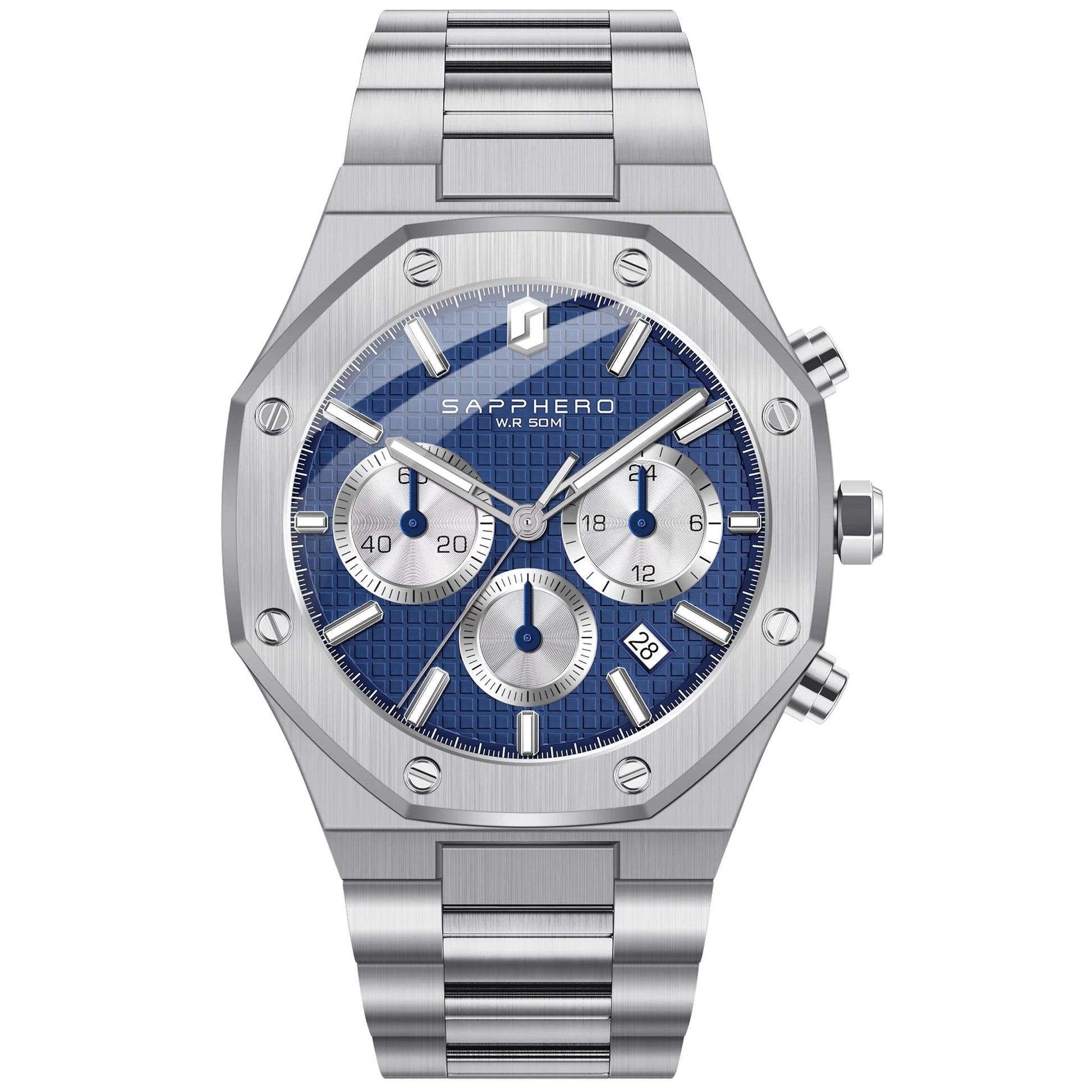 A refined timepiece crafted for men who value elegance and precision. Featuring a sapphire crystal, stainless steel construction, and a high-precision quartz movement, it balances durability with timeless style. Its 42mm dial and slim profile make it the perfect companion for both business and leisure.