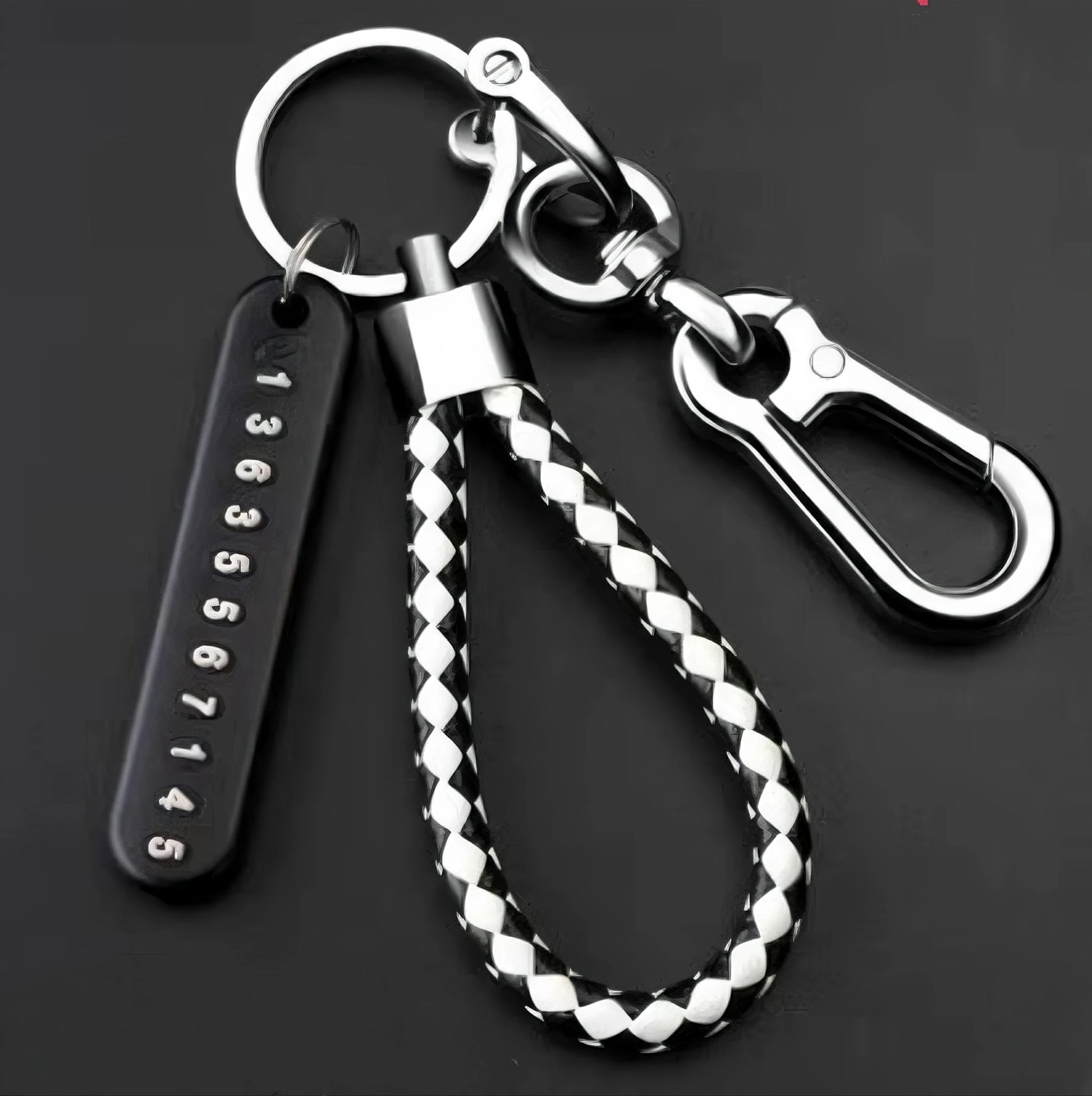 The Braided Leather Rope Keychain blends durability with modern style. Made from high-quality leather and finished with black gun–plated stainless steel, it’s designed to keep your keys secure while adding a refined touch to your daily essentials.