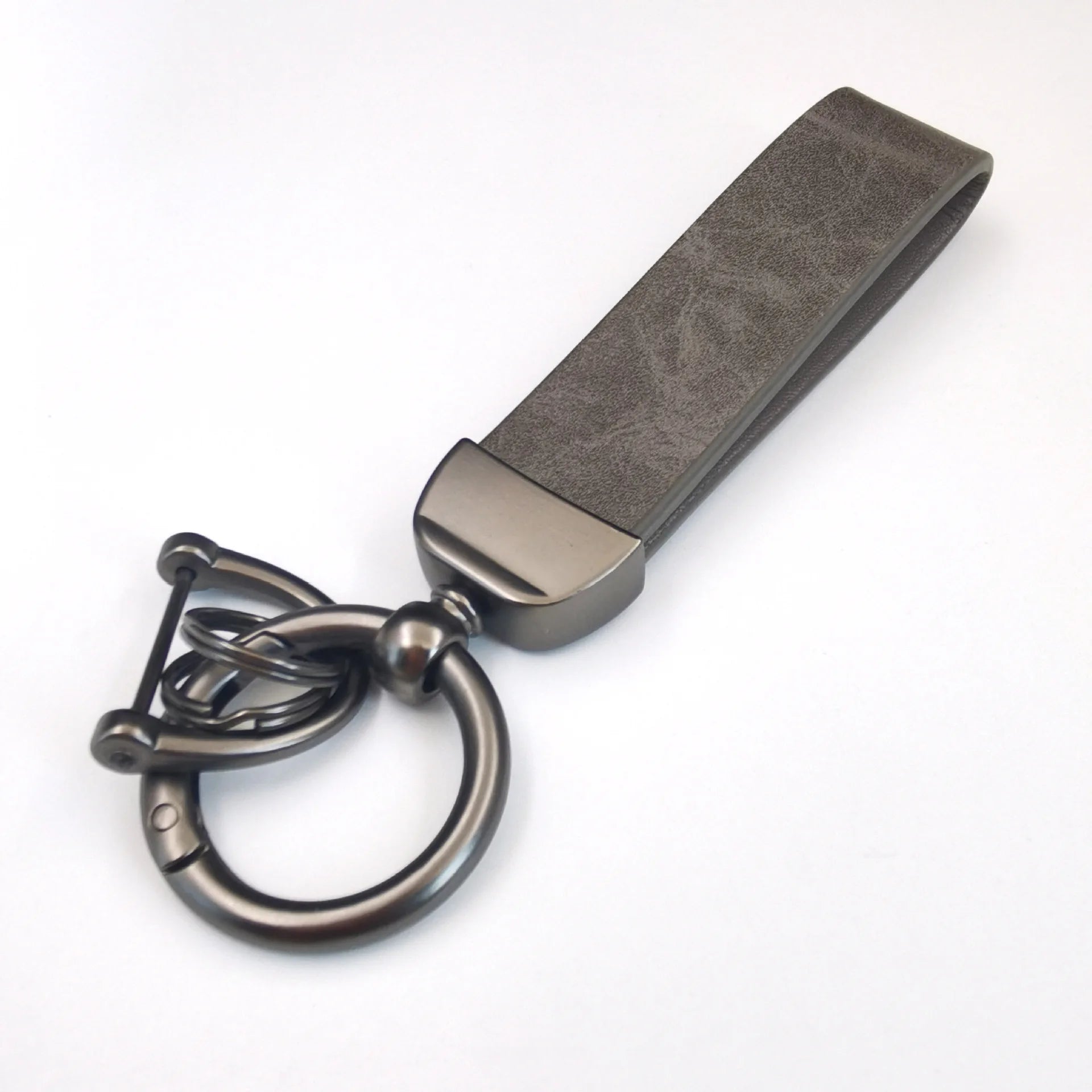 A sleek PU leather keychain with a refined metal accent. Elegant, durable, and compact — the perfect everyday accessory.
