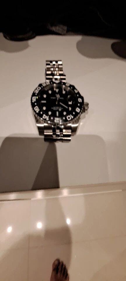 - Functions: GMT dual time zone, complete calendar, luminous hands & markers, screw-down crown, shock resistance