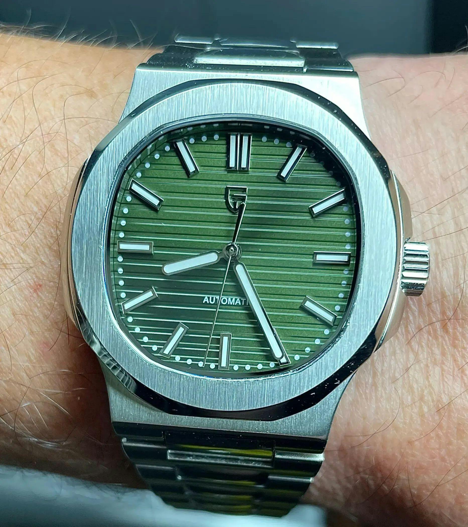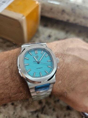The Pagani Design PD-1728 is a bold reinterpretation of modern luxury. With its 40mm tonneau-shaped stainless steel case, sapphire crystal with anti-reflective coating, and luminous details, this watch offers a balance of elegance, durability, and contemporary style.