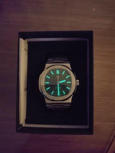 - Functions: Luminous hands, screw-down crown, shock resistant