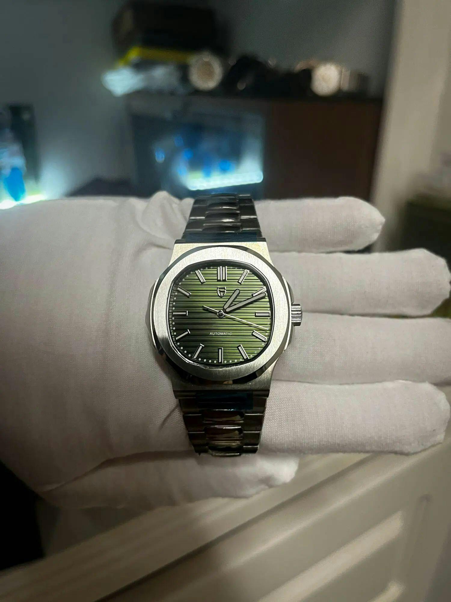 Equipped with a mechanical automatic movement, sapphire crystal glass, and a robust stainless-steel case, this watch offers both durability and timeless style. The luminous markers ensure clear readability in any environment, while the 10ATM water resistance makes it as practical as it is elegant.
